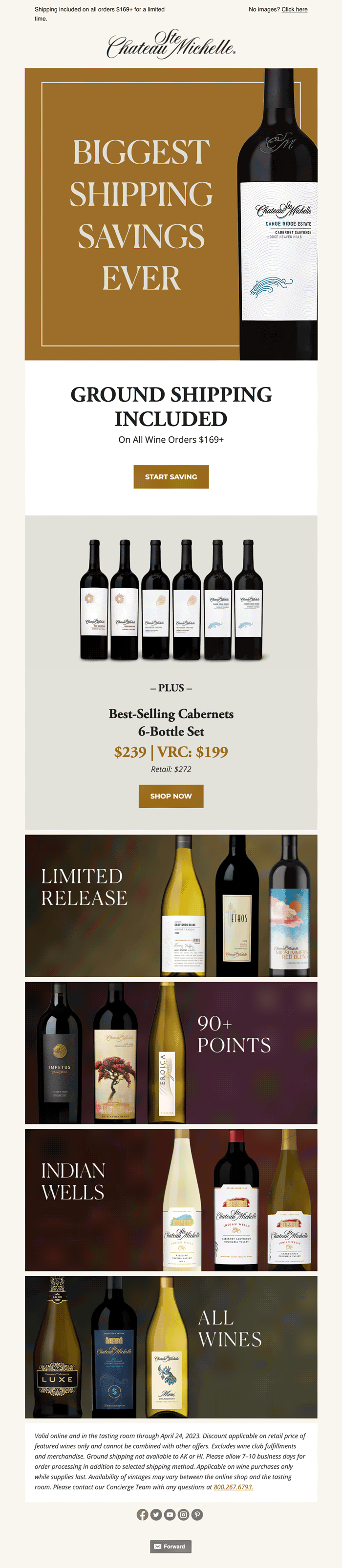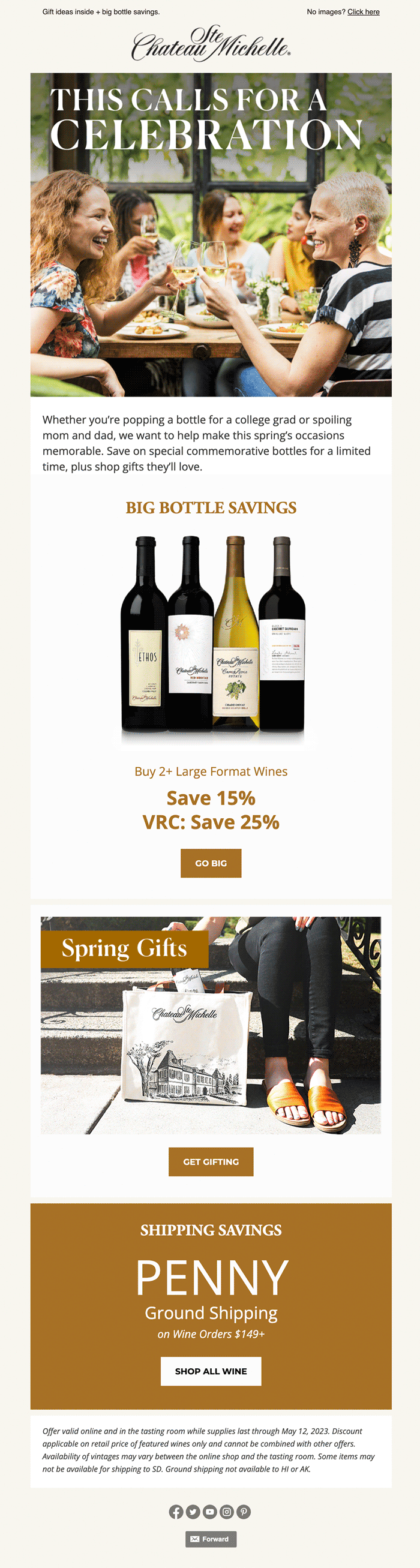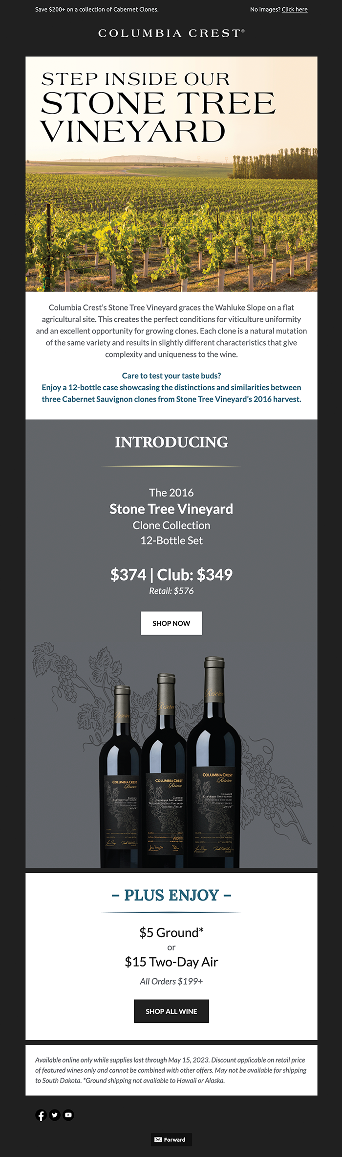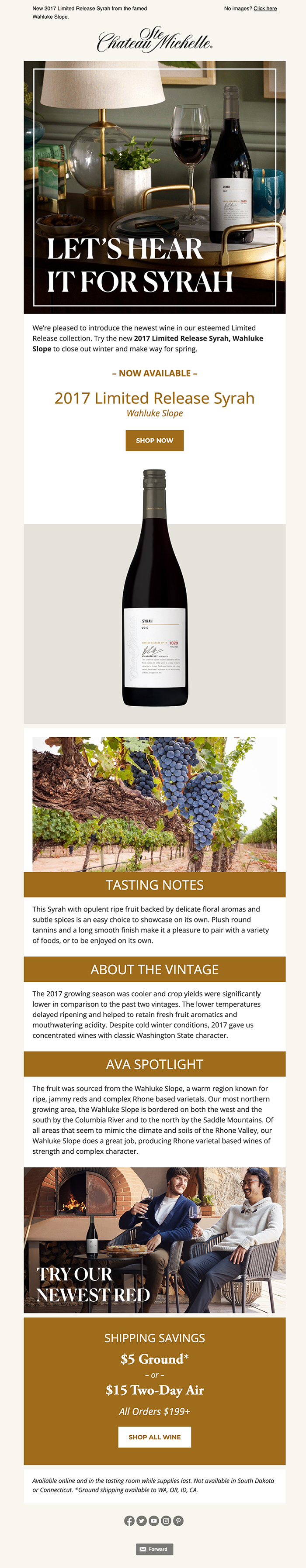 Chateau Saint Michelle is a beautiful winery in Woodinville Wa. The brand also owns several other wineries in Washington, Oregon and California. My role on the digital team primarily focused on creating and designing emails, and web and social media graphics for all the wineries.